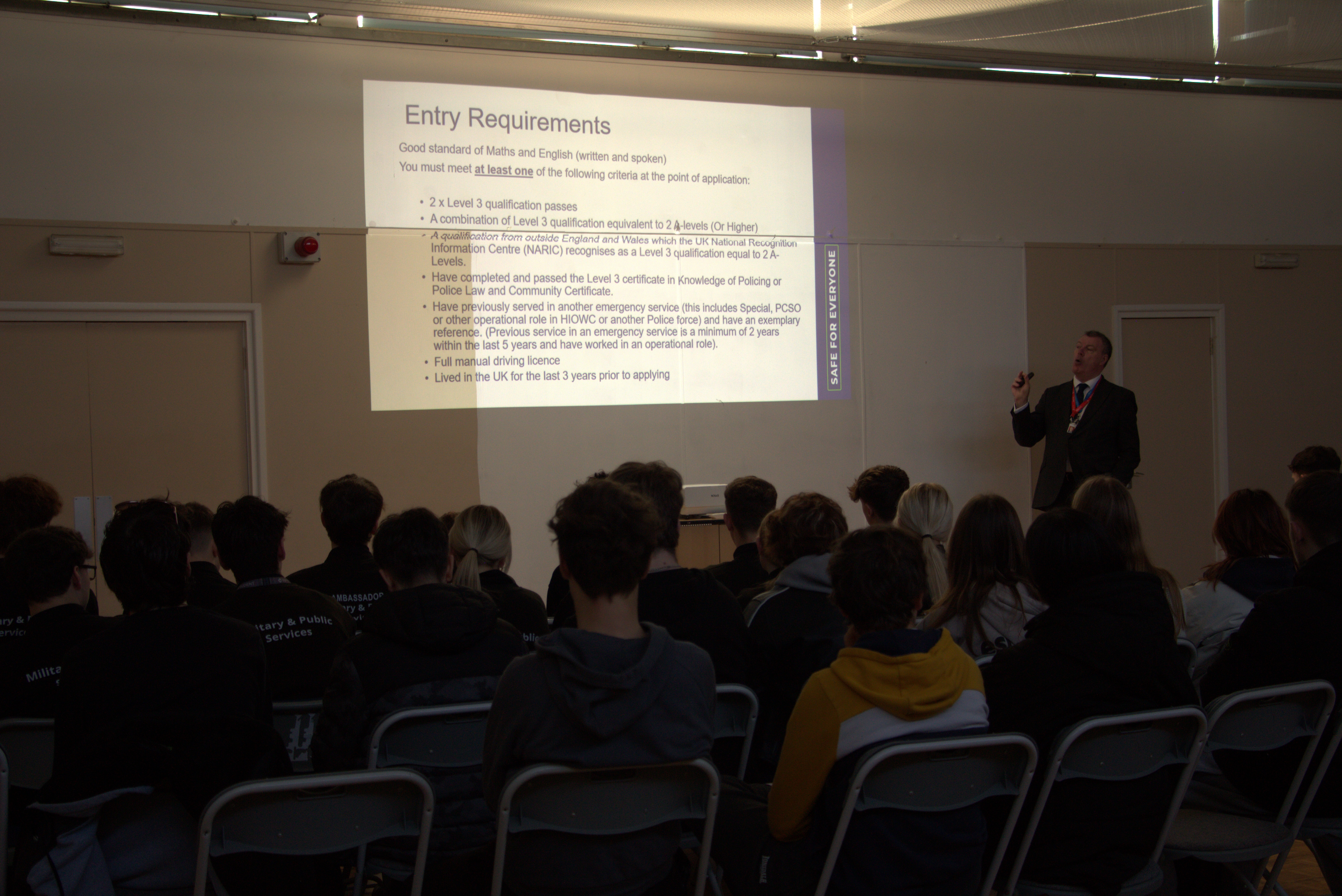 During the morning session, Jonathan shared his insights into the diverse range of career opportunities available within the police force. He emphasised how the courses students are currently undertaking can act as a pathway into various roles within the constabulary.