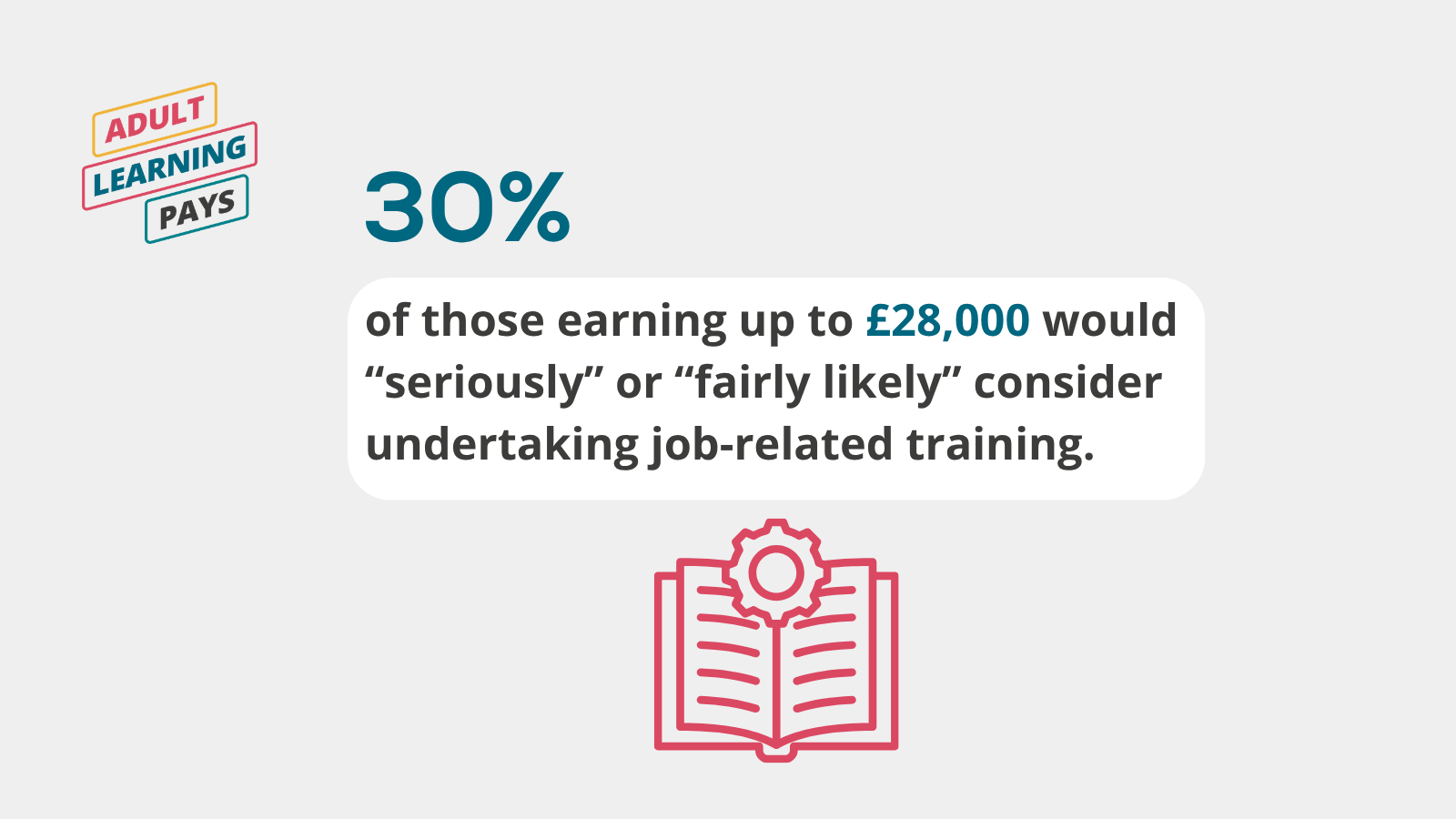 - 50% of high earners and 30% of lower earners are considering job-related training.