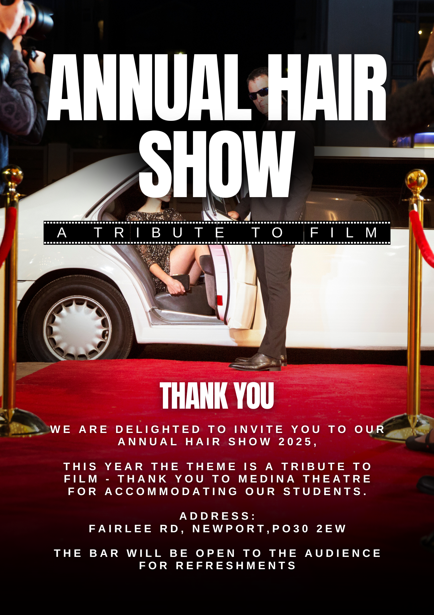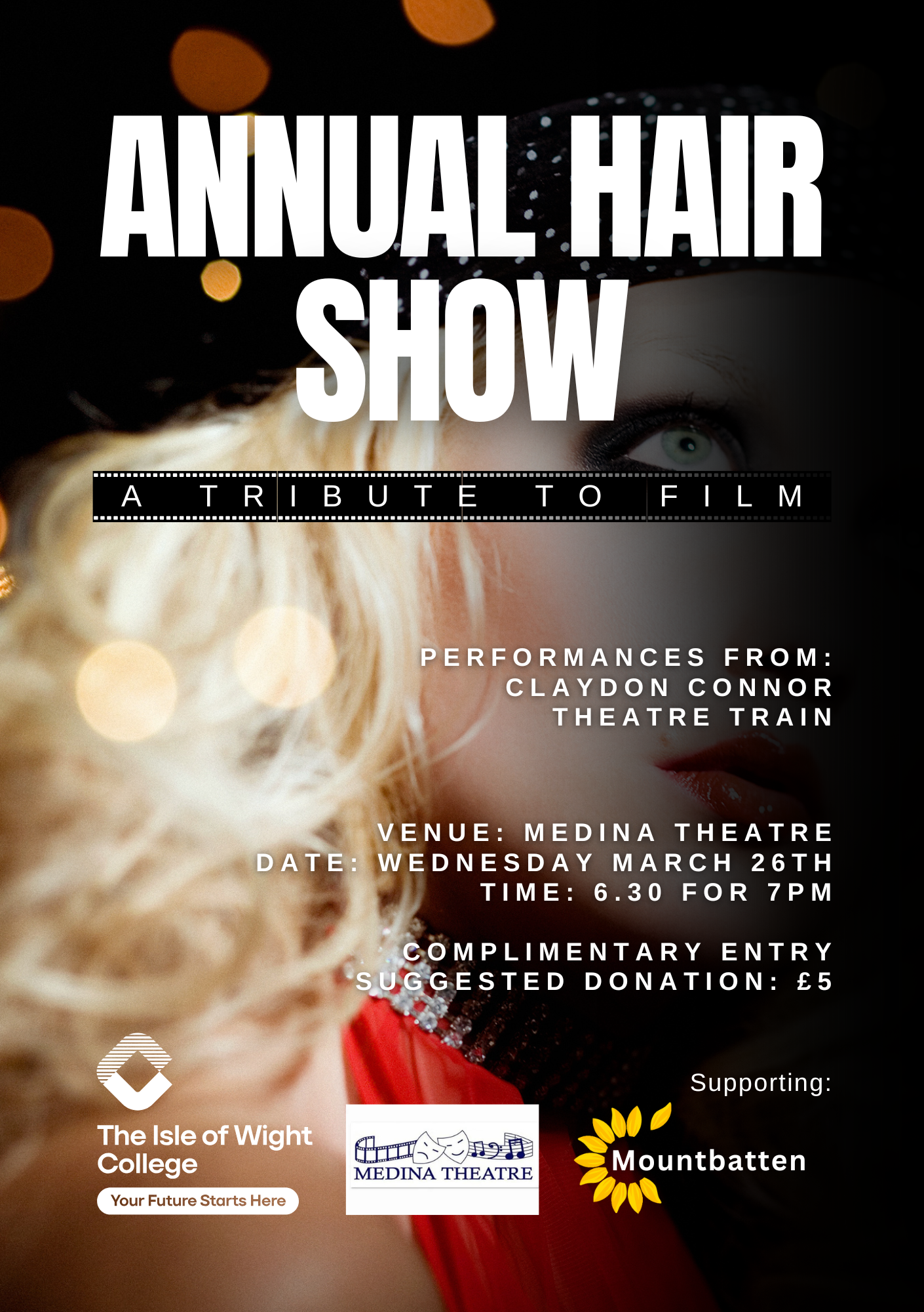 Join us for an unforgettable evening at the Isle of Wight College 2025 Hair Show, where our talented hairdressing students will showcase their creativity and skills in a spectacular tribute to the world of film.